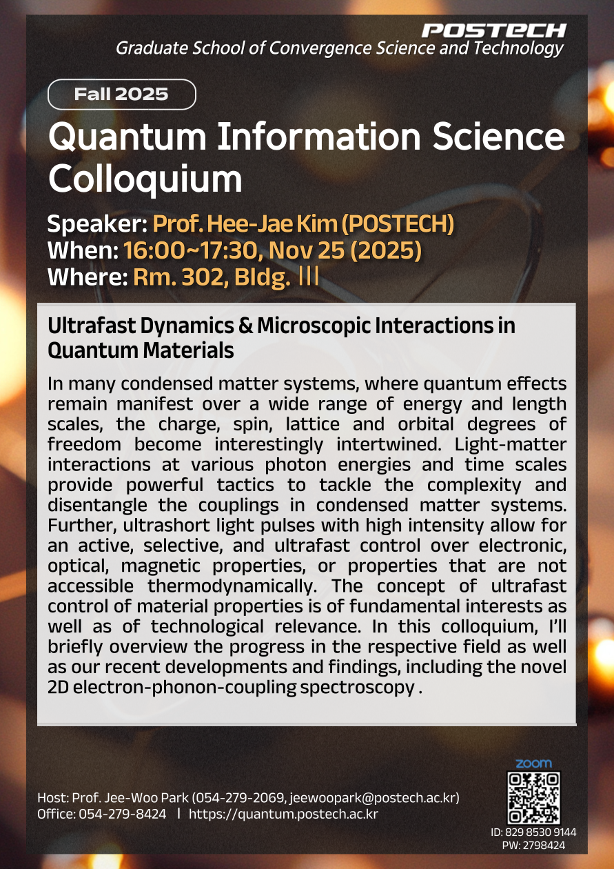 [콜로퀴움] 11/25 김희재 교수 Nov 23 Written By Tae Kim 일시: 화요일 16:00-17:30장소: 포스텍 제3공학관 302호Zoom: link Tae Kim